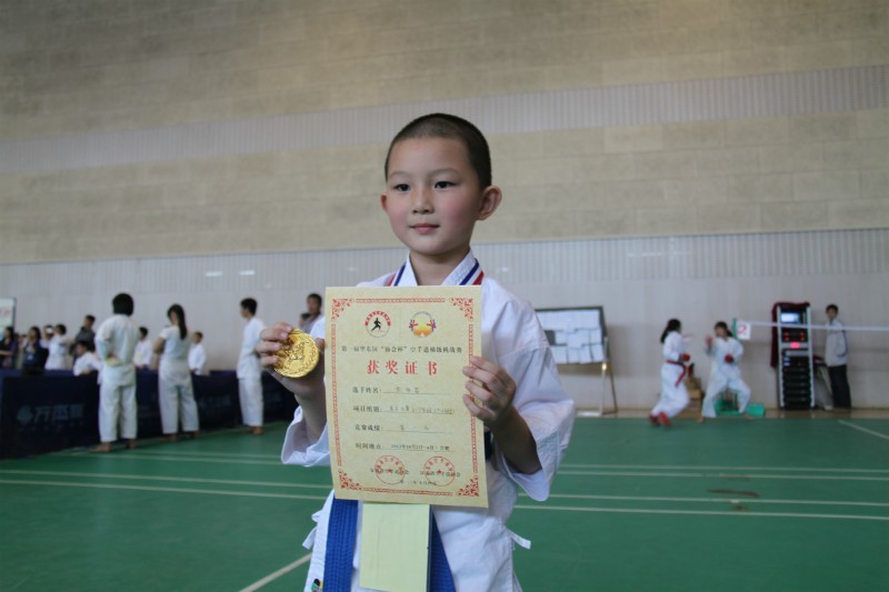 51视频 空手道代表队选手安医大附小一(2)班余雨若同学为51视频 代表队夺得首枚金牌