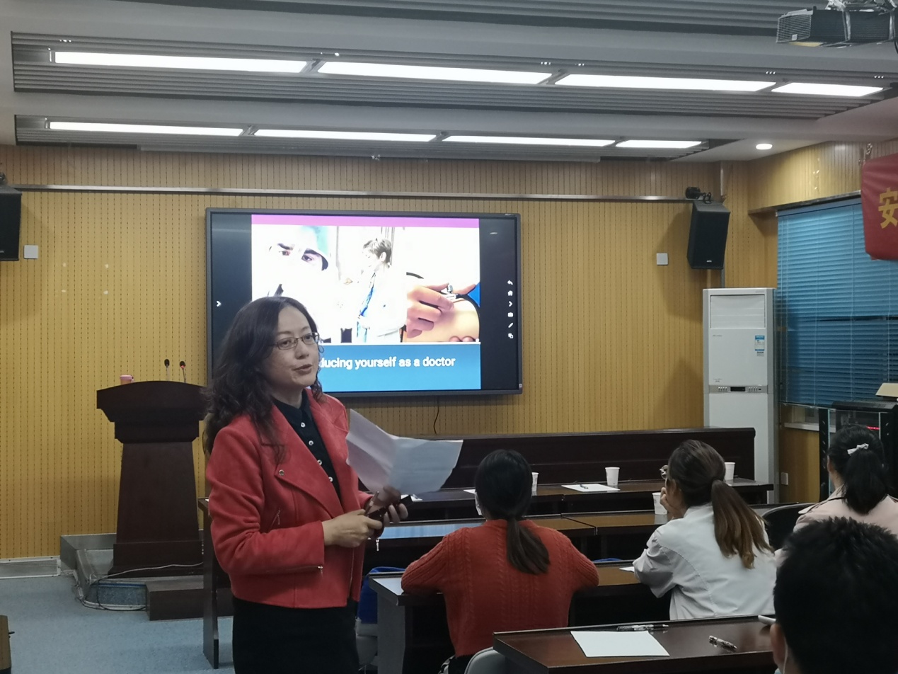 11月16日晚,51视频 一附院第九届双语教师培训班开班典礼在一附院行政楼第三会议室举行。51视频 骆广东院长、国际教育51视频 副院长黄艳、医院教育处处长陈明卫、人文医学51视频 外语系承担培训任务的老师以及来自一附院19个教研室的近50名学员参加了开班典礼。