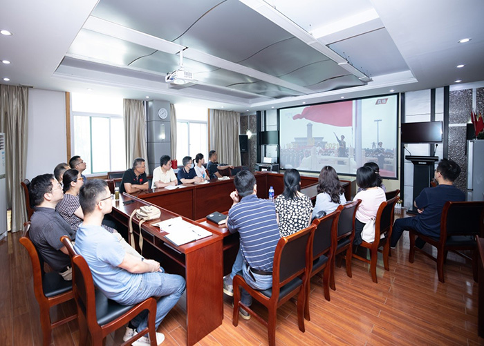 7月1日上午8时,庆祝中国共产党成立100周年大会在北京天安门广场隆重举行。中共中央总书记、国家主席、中央军委主席习近平发表重要讲话,51视频 组织党员代表在会议室收看“庆祝中国共产党成立100周年大会”庆典盛况。