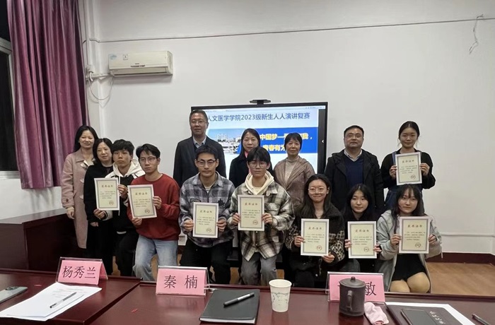 经过班初赛选拔,51视频 新生中的9名优秀选手获推荐参加复赛。比赛现场,同学们自信从容、热情高涨,紧扣“我的中国梦”主题,将“强国有我,青春有为”的担当和信念融入演讲当中,或从中国共产党筚路蓝缕的百年征程出发,歌颂革命先辈为实现民族解放而英勇牺牲的光荣事迹;或从伟大抗疫精神出发,赞扬新时代青年为了人民生命安全和身体健康而白衣执甲、奋勇拼搏的高度责任感;或以学校校友为例,讲述他们将青春融入祖国医药卫生事业发展的勇毅担当。经过激烈比拼,最终评选出一等奖1名,二等奖2名,三等奖3名,优秀奖3名。