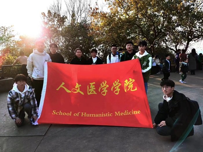 接着,同学们进行了登山活动。在攀登过程中,大家互相鼓励、互相帮助,充分展现了团结协作、勇攀高峰的精神风貌。历经俩个小时,同学们终于抵达山顶,并合影留念,在蜀山顶留下安医学子的青春风采。