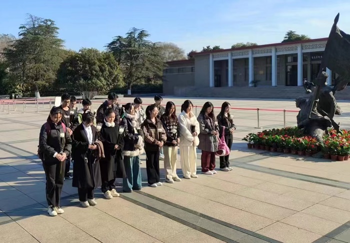 活动伊始,团支书黄一婷结合二十大,向全体团员详细介绍了活动主题,忆先烈,感今朝,担使命,传承红色精神。随后,全体团员前往蜀山烈士陵园,向烈士纪念碑敬献鲜花,默哀缅怀,表达了对革命先烈的崇高敬意和深切缅怀。