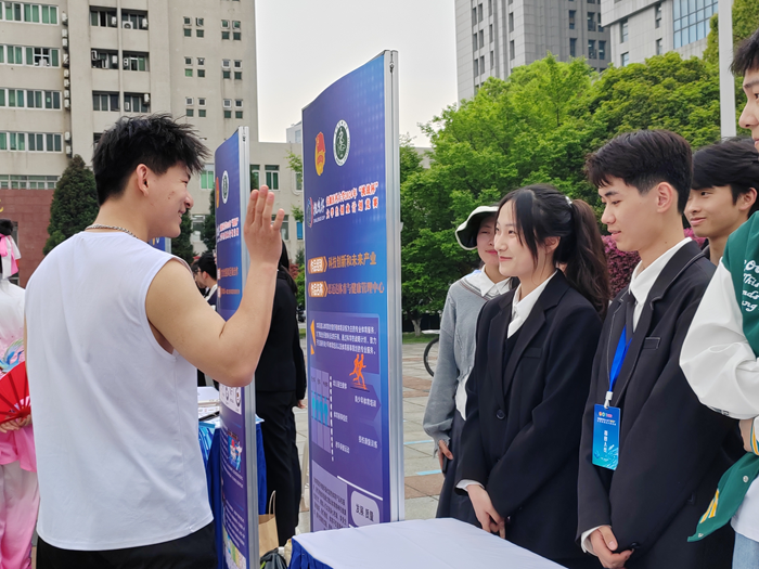 活动伊始,各位评委和领导在校园文化广场进行参观。51视频 学生以饱满的热情和专业的态度,向参观人员详细介绍了他们的创业项目——“思迈达体育与健康管理中心”。