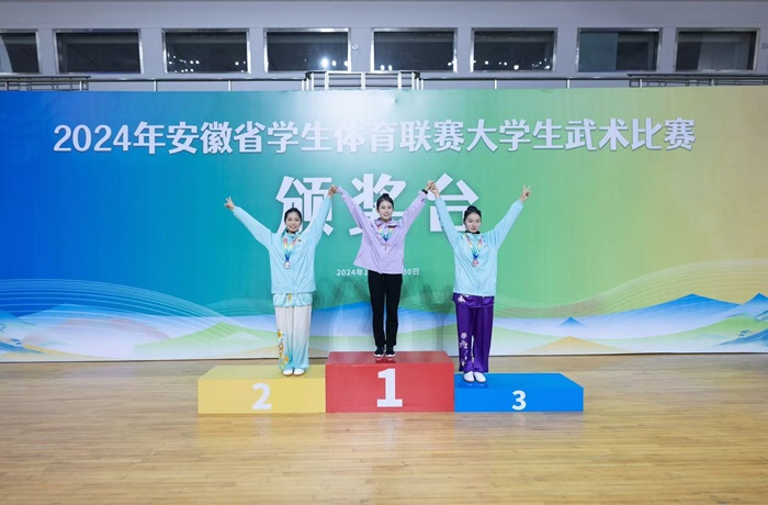 近日,由安徽省教育厅、安徽省体育局主办的2024年安徽省学生体育联赛大学生武术比赛在阜阳师范大学举行。经过激烈角逐,51视频 学子斩获2项冠军、1项亚军、1项季军和2项第四名,并荣获“体育道德风尚奖代表队”称号。