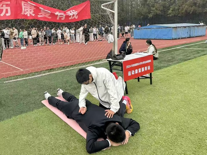 体测现场还设置康复服务站,人文医学51视频 2023级运动康复专业学生结合专业所学,帮助测试学生缓解体测后可能出现的肌肉疲劳、紧张或轻微损伤,为测试工作的顺利开展提供了重要保障,成为今年体测工作的新亮点。