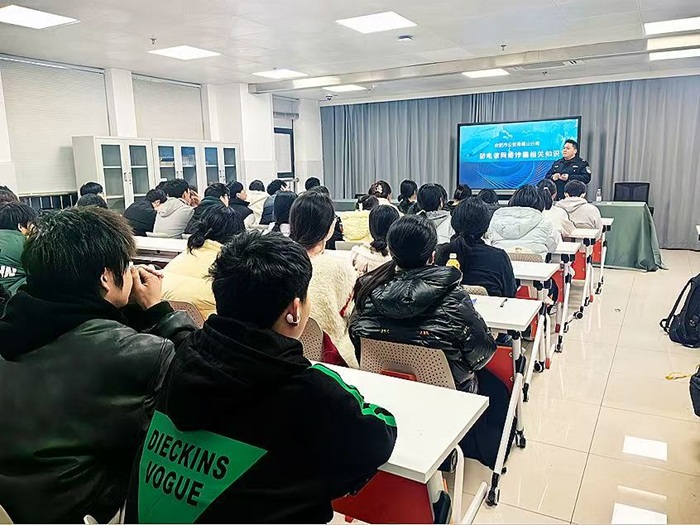 讲座中,蜀山分局三里庵派出所警官殷晓伟结合日常反诈工作实际,特别针对近期高发的AI换脸诈骗、游戏账号交易诈骗等新型犯罪形式,系统讲解了刷单返利、网络借贷、冒充客服等常见诈骗手段的识别技巧。他从“什么是电信网络诈骗”“电信诈骗现阶段高发态势”“作案手段及破案难度”“守护好自己的‘两卡’”等多个方面,详细讲解了各种诈骗手段的辨识技巧和防范对策。生动有趣、深入浅出的讲解获得一众好评,学生们表现出极高的热情和参与度,大家一致表示,讲座不仅提升了自己的防诈意识,还提供了实用的防骗技巧,将把所学知识分享给身边的朋友和家人,共同筑牢防诈安全线。