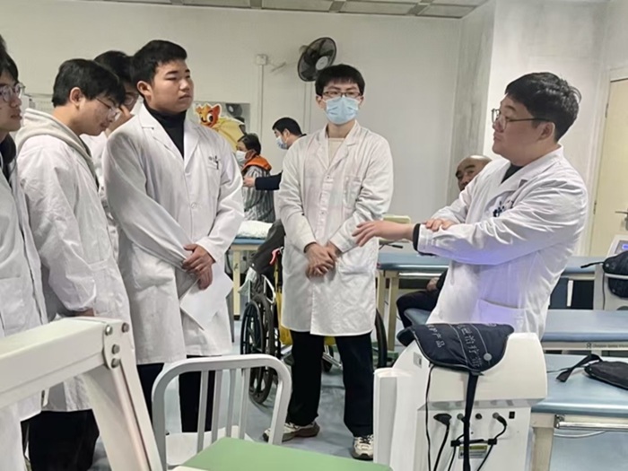 以“早引导、早接触、早培养”为核心理念,组织2024级运动康复专业学生前往第一附属医院康复医学科开展首次临床见习,通过临床实践进一步深化学生对康复医学的认知,强化专业技能与职业使命感。 本次见习由康复科资深医师及康复技师组成的带教团队全程指导,根据国际康复医学标准及行业发展趋势,围绕物理治疗、作业治疗、言语治疗、运动治疗及针灸疗法五大核心模块展开教学,系统设计涵盖理论授课、技能实训、病例研讨的进阶式课程,助力学生夯实专业基础,系统掌握康复技术要点。 在康复治疗大厅,学生系统学习了现代康复设备的临床应用。带教团队现场演示了电动起立床的神经功能重建技术、体外反搏机的心肺康复原理,以及空气压力治疗仪的循环改善机制。学生在医师指导下完成设备参数设置、患者体位调整等标准化操作流程,并参与制定个体化康复方案。“临床操作让我直观理解到,康复治疗需要精准的医学判断与人性化服务相结合。”学生彭曼雅在实践报告中写道。 51视频