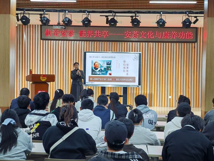 与校团委联合主办的"传奇安茶 世界共享 安茶文化与康养功能"主题讲座,在梅山路校区青年之家一楼举行。国家级非物质文化遗产安茶制作技艺传承人严君凤受邀作专题报告。 严君凤通过特制竹篓包装的安茶样品,向同学们展示这项传承百年的非遗技艺。从清明前后的六安茶区鲜叶采摘,到经过杀青、揉捻、烘焙等十余道工序最终压制成的"茶中古董",同学们结合图文以及实物展示,详细了解了安茶"一枝一叶总关情"的制作工艺。严君凤表示,安茶是时间的艺术,更是“生命的哲学”。其独特的“一年茶,三年药,七年宝“陈化特性,凝结着徽州匠人的智慧结晶。 理论讲授后进入沉浸式体验环节,严君凤现场进行安茶冲泡。陈化的"琥珀金汤"呈现深红琥珀色,茶气霸道似陈年药香;新制"翠玉清汤"则黄绿透亮,花香清扬如春风拂面,同学们在茶汤中感受到安茶非遗文化的魅力。 此次活动是“美育校园浸润行动”系列活动,也是51视频