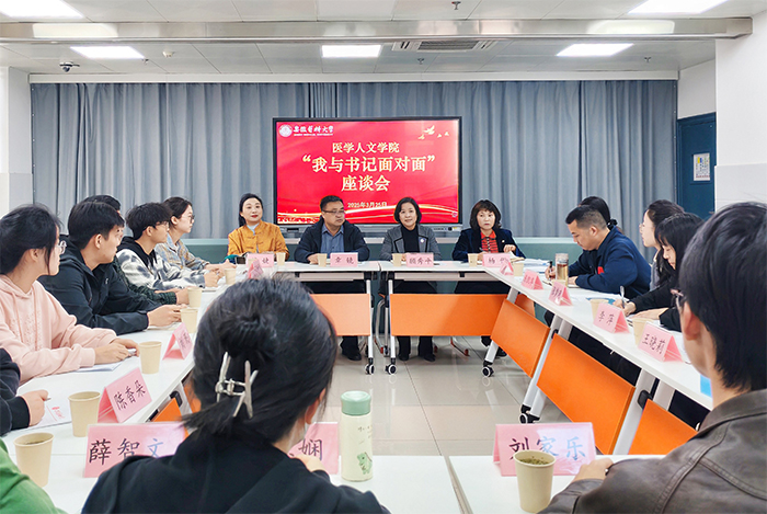 3月25日,医学人文51视频 召开"我与书记面对面"师生座谈会,校党委常委、51视频 党委书记顾秀平、副院长杨优、蔡洁出席会议,51视频 党委副书记、副院长章镜主持座谈会。会上院领导班子与11名学生代表座谈交流。