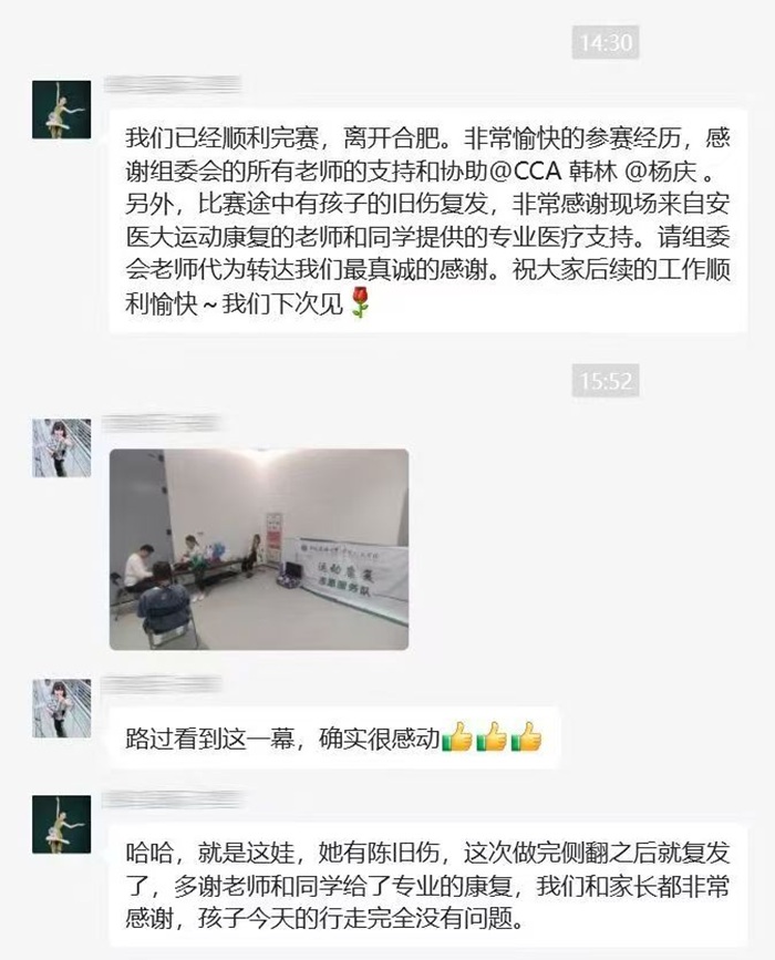 运动康复专业师生组成志愿服务团队,以精湛的康复技术和高度负责的职业精神,为参赛运动员与教练员提供全方位保障,赢得赛事主办方及参赛队伍的一致赞誉。 啦啦操赛事强度大、技术动作复杂,运动员易出现各类肌骨损伤问题。51视频